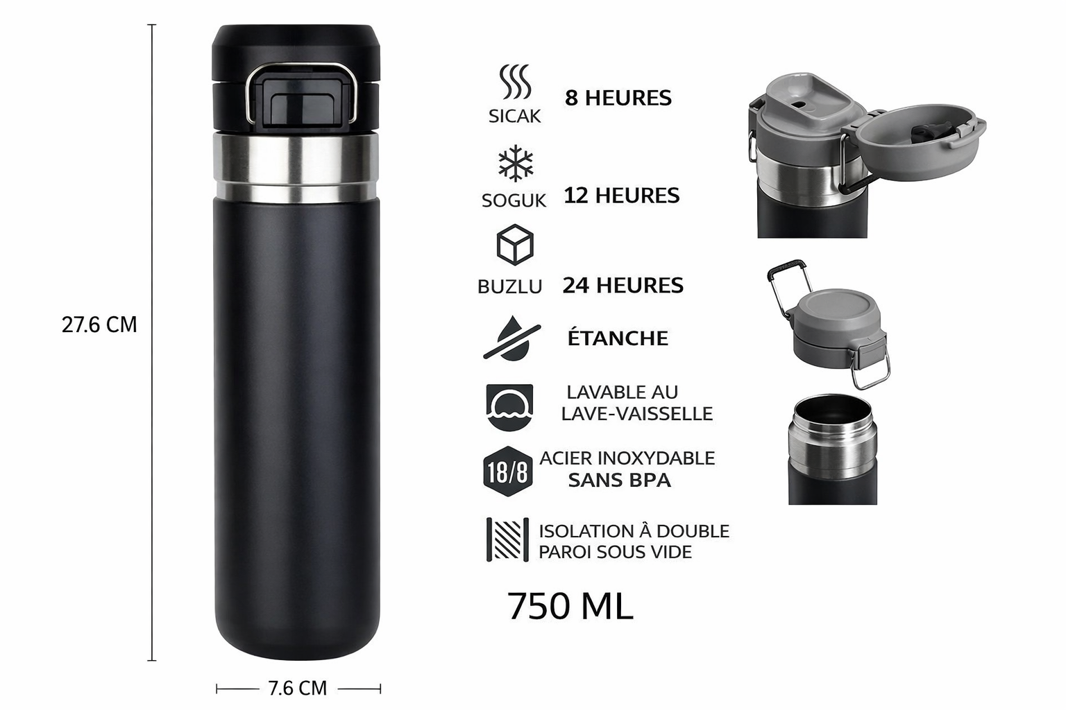 Thermos Isotherme en Acier Inoxydable 750 ML