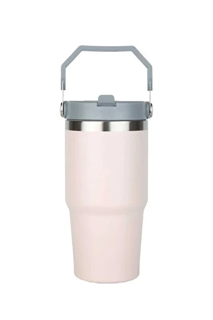 Thermos Globox en acier inoxydable avec paille et poignée, large ouverture, 650 ml